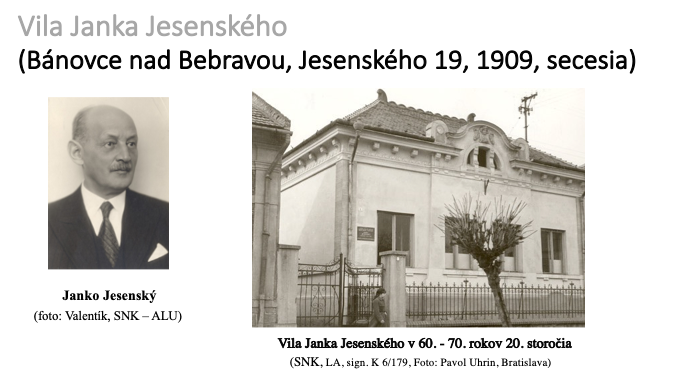 Janko Jesenský vo vile býval do roku 1914, keď musel narukovať. Jeho manželka sa z existenčných dôvodov odsťahovala do Revúcej k rodičom. Jesenský sa už do Bánoviec a ani k advokácii nevrátil. Po prvej svetovej vojne bol gemersko-malohontským županom, neskôr županom v Nitre a od roku 1928 pôsobil na Krajinskom úrade v Bratislave, od roku 1931 ako viceprezident. Funkcie sa vzdal v roku 1938 na protest proti fašizácii štátu (11).
