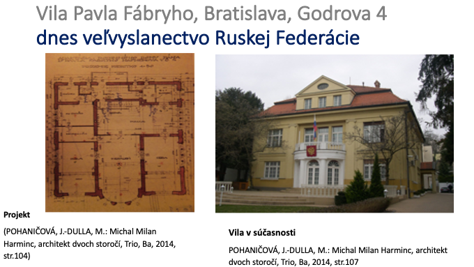 Architekt Milan Michal Harminc je i autorom projektu a neskorších úprav a prestavby vily (1925, 1947) na dnešnej Godrovej 4 (predtým Haffnerova) v Bratislave postavenej pôvodne okolo roku 1900 (možno 1915), ktorá sa stala známou ako Vila Pavla Fábryho.