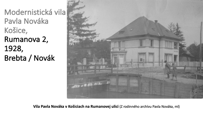 Projekt Novákovej vily spracoval pražský architekt Rudolf Brebta (1885-1953), ktorý v Košiciach pôsobil od vzniku ČSR (27). Hoci tvaroslovie bratislavskej vily je ešte neoklasicistické, s neskôr postavenou vilou Pavla Nováka má veľa spoločných znakov, obe vily sú si navzájom veľmi podobné (28). Brebta zvládol svoju úlohu vytvoriť projekt modernej, reprezentačnej a pohodlnej vily excelentne, svojou úžitkovou hodnotou a umeleckou kvalitou sa vyrovnala švagrovej vile v Bratislave (29). Obdivuhodným spôsobom pretvoril štýl bratislavskej neoklasicistickej vily na elegantnú modernistickú košickú vilu mimoriadnych kvalít (30).