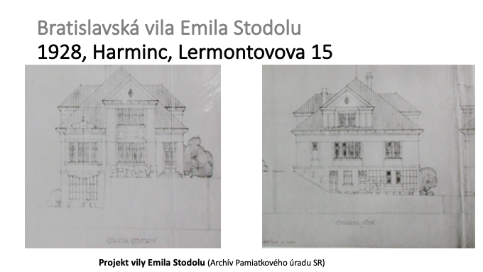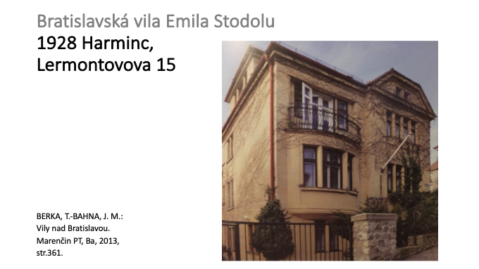 Počas bratislavského pôsobenia Emila Stodolu si rodina nechala postaviť v roku 1928 znova podľa projektu Milana Michala Harminca vilu na dnešnej Lermontovovej ulici č. 15 v Bratislave.