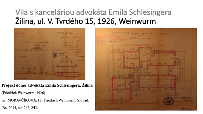 Niektorí advokáti si nechali navrhnúť rodinné vily tak, aby ch súčasťou boli i priestory pre advokátsku kanceláriu. Takou bola napríklad žilinská vila advokáta Emila Schlessingera postavená v roku 1926 podľa projektu Friedricha Weinwurma (stála na dnešnej ulici Vojtecha Tvrdého 15 v Žiline).