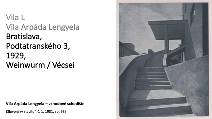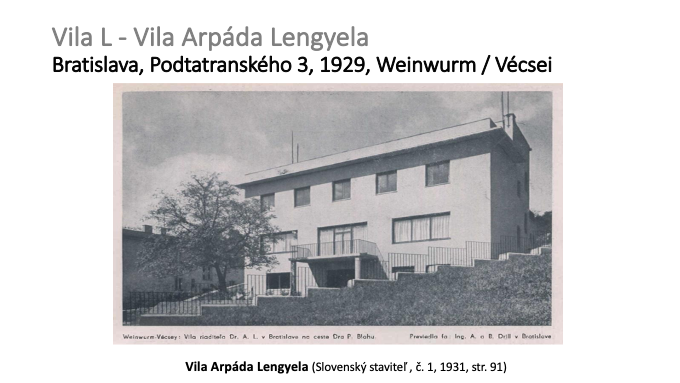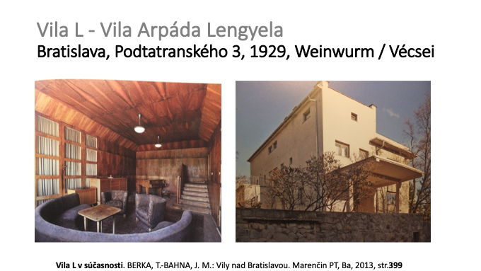 69 – Vila advokáta Bánhegyiho, Bratislava, Stará vinárska 1, projekt 1932, Dezider Quastler. K tomu viac: BERKA, T.-BAHNA, J. M.: Vily nad Bratislavou. Marenčin PT, Ba, 2013, str.404-405