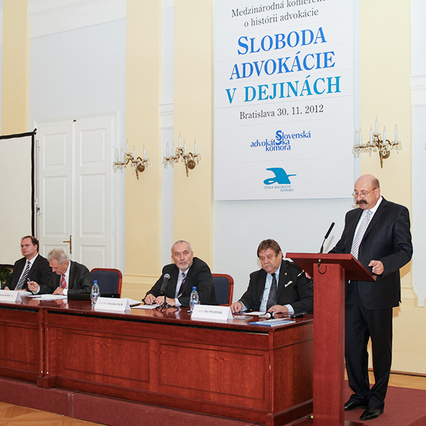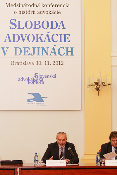 Dňa 30. novembra 2012 historická budova Slovenskej národnej rady privítala vo svojich priestoroch odborníkov na dejiny práva i laikov-nadšencov pri príležitosti slávnostného konania medzinárodnej konferencie o histórii advokácie. Toto podujatie nadväzuje na úspešnú tradíciu, ktorá sa pred ôsmimi rokmi zrodila a formovala v Českej republike. Tentok rok bola konferencia po prvý raz organizovaná na Slovensku v úzkej spolupráci Slovenskej a Českej advokátskej komory. Archív výstupov z uplynulých ročníkov je dôkazom, že česká právnická obec dosiahla na tomto poli značné výsledky, ktoré sú prínosom pre celú stredoeurópsku oblasť. Aj z dôvodu spoločných historických koreňov bolo portfólio pozvaných v roku 2012 rozšírené na kolegov zo susedných krajín a tak konferencia vďaka prítomnosti maďarských, rakúskych a poľských kolegov získala oprávnene prívlastok medzinárodná.