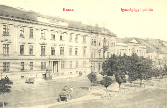 V roku 1891 po rozhodnutí zvýšiť počet súdnych tabúľ v Uhorsku sa Košice stali i sídlom Kráľovskej súdnej tabule (bola zriadená na základe zák. čl. XXV/1890). Bolo rozhodnuté o výstavbe novej účelovej súdnej budovy, o čo sa pričinil okrem iných aj advokát dr. Edmund Éder (1843-1912). Do jej obvodu patrili Kráľovské súdne stolice v Košiciach, Berehove, Prešove, Levoči, Miškolci, Rimavskej Sobote, Satoraljaujhely a Ružomberku. Súdna tabuľa provizórne v Košiciach zatiaľ sídlila v dome lekárnika Viliama Malétera (na rohu dnešnej Mlynskej a Puškinovej ulice). Jej prvým predsedom sa stal dr. Adolf Oberschall (1839-1908), ktorý dovtedy pôsobil v Sedmohradsku. V roku 1896 darovalo mesto Košice štátu pozemok aj na výstavbu tejto budovy. Stavbu realizoval podľa projektu budapeštianskeho architekta Júliusa Wagnera od roku 1901 Košičan Michal Répaszky. Po dokončení stavby 24.10.1903 odovzdal mešťanosta Teodor Műnster palác novému predsedovi kráľovskej tabule Deziderovi Berczéllymu (1842-1932). Ten prišiel do Košíc zo súdu v Kluži a predsedom košickej tabule bude až do odchodu na dôchodok v roku 1912. Novorenesančná budova stojaca v záhrade (obr. č. 2) mala na priečelí súsošie spravodlivosti vytvorené z umelého kameňa Františkom Ballóm (1870-1944). Po premenovaní na Vrchný súd v Košiciach v časoch 1. ČSR, bude jeho predsedom od roku 1923 dr. Martin Mičura (1883-1946) a po ňom od 1931 dr. Jozef Gregor. V roku 1904 bolo v košickej komore (obr. č. 3) zapísaných 161 advokátov a 98 advokátskych osnovníkov.