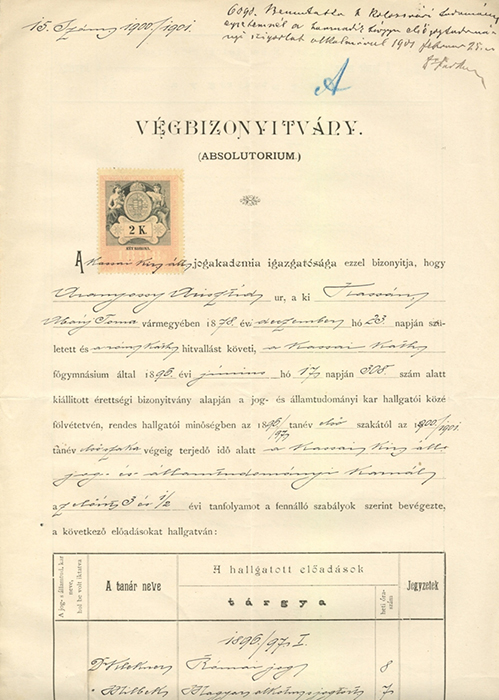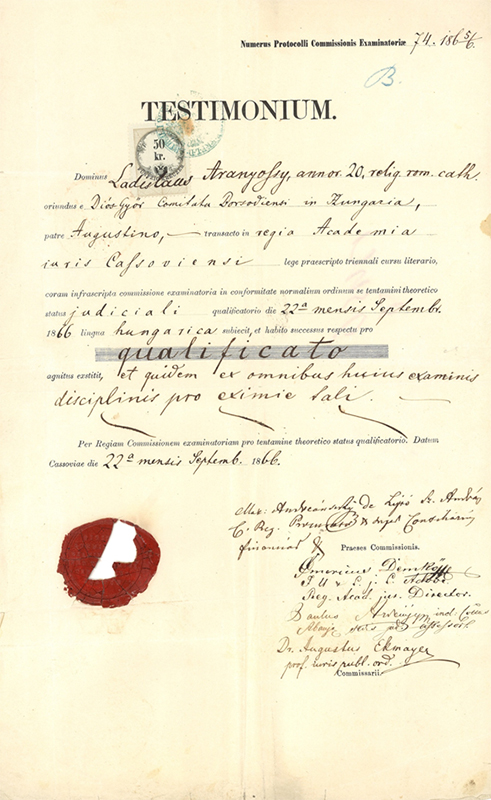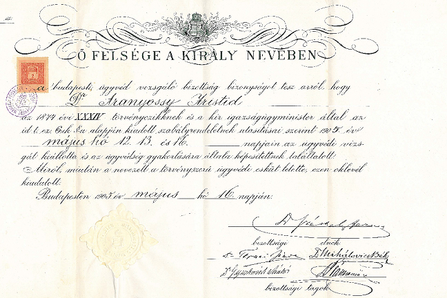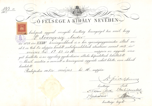Aristid a Andrej zložili advokátsku skúšku v rovnakom termíne 12., 13. a 16. mája 1905 pred Budapeštianskou skúšobnou komisou (obr. č. 37, 38).