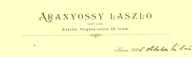 Rodina Aranyossyovcov bola významnou zemianskou rodinou, šlachtický titul získala v roku 1835. Jej niekoľko generácii žilo v Košiciach. Aranyossyovci boli rímskokatolíckeho vyznania. Ján Aranyossy de Forbász (1781 – 27.4.1866, Košice) bol od roku 1812 mestským úradníkom v Košiciach, po roku 1820 mestským radcom a od roku 1849 mešťanostom. V roku 1833 sa stal poslancom za Košice na uhorskom sneme, bol ním i od januára 1849. Jeho manželkou bola Františka, rod. Katcsandy (1785 – 1.2.1867). Ján Aranyossy sa v roku 1850 stal sudcom košického dištriktuálneho súdu, predtým bol komisárom Grémia obchodníkov (1845-49). Syn Jána a Františky Augustín Aranyossy de Forbász (17.6.1821, Košice – 14.2.1881, Košice) bol advokátom – advokátsky sľub zložil 2.5.1842 (obr. č. 4). Okrem toho bol mestským úradníkom, mešťanostom, riaditeľom finančného úradu, kráľovským radcom a funkcionárom meštianskeho kasína (1877, 1881). Jeho manželkou bola Mária, rod. Ribáry (1826-1894). Ich synom bol spomínaný advokátsky osnovník Ladislav Aranyossy (obr. č. 5). Dr. Ladislav Aranyossy de Forbász (25.10.1846, Miskolc, časť Diósgyör – 8.5.1907, Budapešť) študoval na Premonštrátskom gymnáziu v Košiciach, ktoré absolvoval v roku 1863. V štúdiu pokračoval na Košickej právnickej akadémii (Acadenia juris Casoviensi, ktorá vznikla v roku 1777) (obr. č. 6, 7, 8), absolutórium dosiahol 15.7.1866 (obr. č. 9, 10, 11) a záverečné skúšky zložil 22.9.1866 . Osnovníkom bol u dr. Michala Juhásza od mája 1867, čo mu potvrdil jeho zamestnávateľ 1. mája 1868 zrejme pre účely advokátskej skúšky. Tú zložil 21.7.1868 (obr. č. 12) a stal sa advokátom v Košiciach (obr. č. 13, 14, 15). Od roku 1868 bol i členom Spolku Košických advokátov (Kassai ügyvédi egylet), ktorého stanovy boli schválené 31.8.1867 (obr. č. 16).
