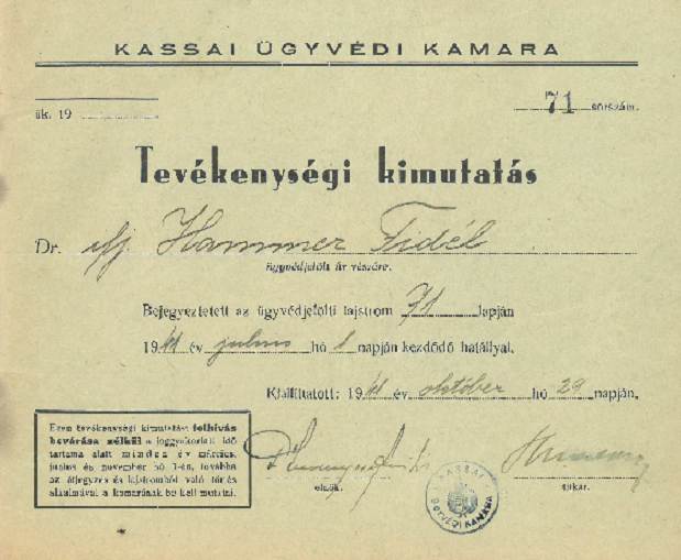(A Kassai Ügyvédi Kamara Évi jelentése az 1942. évröl . Košice, 1942.)