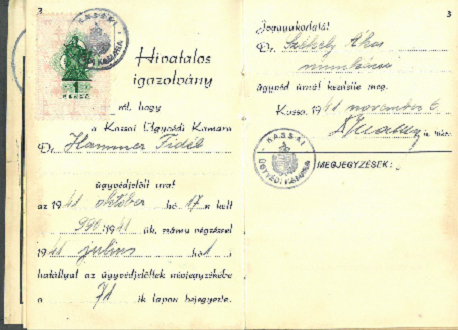 Advokáti zapísaní v košickej komore boli preverovaní podľa maďarského židovského zákona. Známym v Košiciach sa stal aj prípad židovského advokáta dr. Silbersteina, ktorý bol v roku 1942 obvinený z toho, že ukrýval mydlo, mal na dome českú tabuľu a hromadil viazaný tovar.