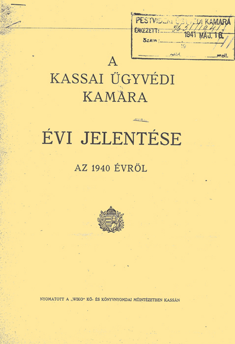 (A Kassai Ügyvédi Kamara Évi jelentése az 1940. évröl . Košice, 1940.)