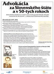 (spoločný projekt Slovenskej advokátskej komory a Univerzitnej knižnice v Bratislave) Hlavným cieľom výstavy je informovanie širokej odbornej a laickej verejnosti o povolaní advokáta ako takom, jeho histórii na našom území, historických medzníkoch, významných osobnostiach, ktoré zasvätili svoj život povolaniu advokáta, ako aj jej súčasnej organizácii. Prirodzene, tento cieľ ani zďaleka nevyčerpáva celkový význam výstavy, ktorej centrom záujmu je advokácia. Výstava je akousi sebareflexiou, analýzou a spoločným zamyslením sa advokátov i občianskej spoločnosti na tému advokácie, aby sme sa vedeli lepšie zhostiť úloh, ktoré pred advokáciou 21. storočia stoja.